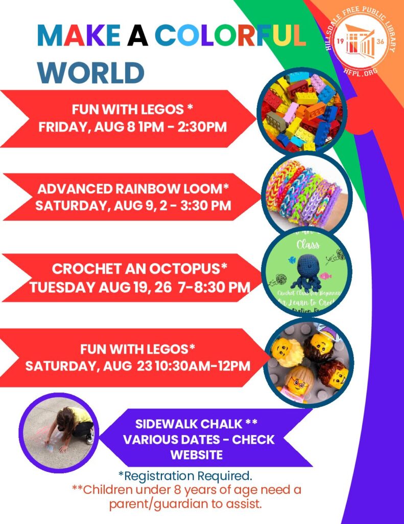 - Saturday, August 23 at 10:30am – Fun with Legos! Grades 2 and Up. Registration Required.