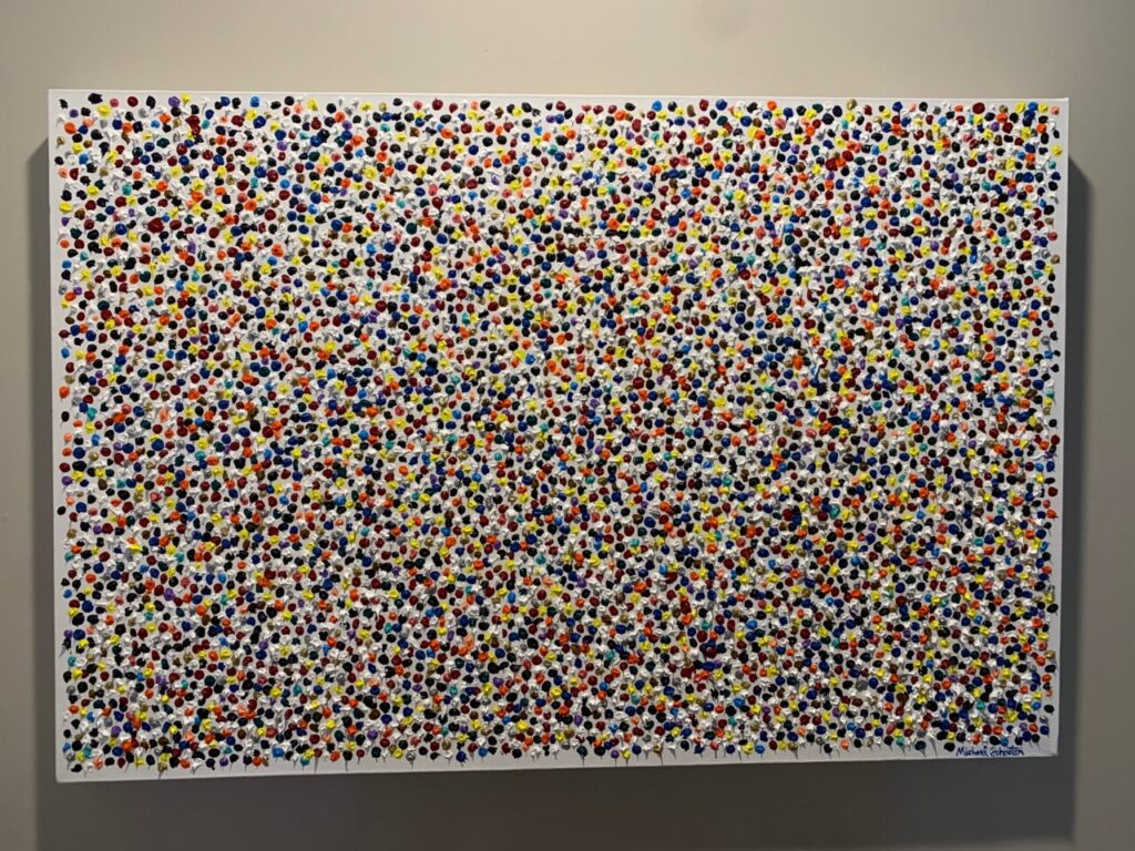 So Much Fun: Acrylic on canvas, 24” x 36”. A celebration of the similarities and differences that occur simultaneously within our existence. They’re abundant and beautiful and should make you smile.