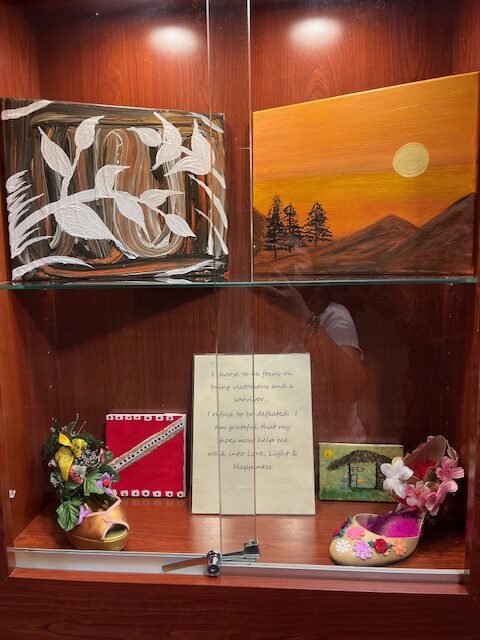 Check out the display cases in the library’s lobby for this exhibit of art created by the clients in the Center of Hope & Safety’s Art-Therapy Program.